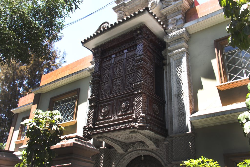 Los balcones de madera tallada y la casa encantada llaman la atención de los transeúntes que caminan por la zona.