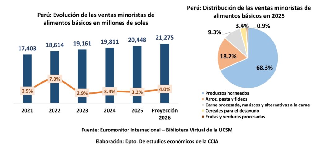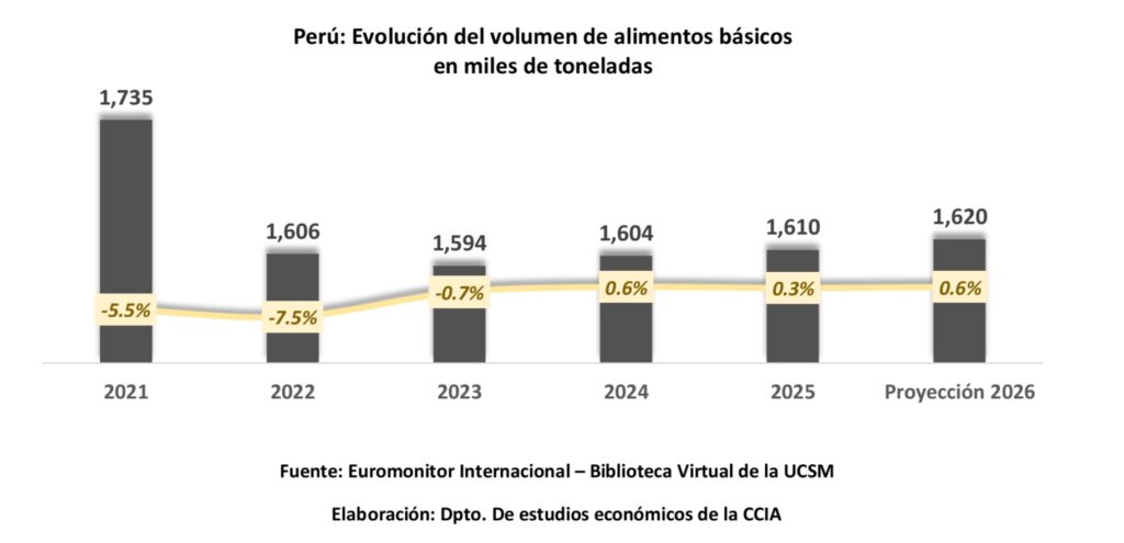 En Perú, el mercado de alimentos básicos mantiene un desempeño estable y predecible, reflejando el carácter esencial de estas categorías en un contexto de consumo aún condicionado por presupuestos ajustados.