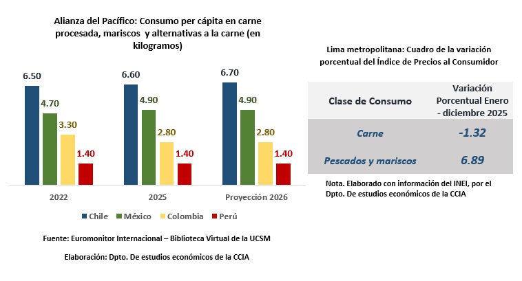 Asimismo, la estabilidad del consumo per cápita en Perú refuerza la idea de un consumidor cauteloso, que mantiene estos productos como complementarios y no como base de la dieta. A diferencia de Chile, donde la conveniencia, la vida útil y la preparación rápida han impulsado una mayor incorporación de carnes y mariscos procesados en el consumo diario, en Perú estos atributos no han compensado plenamente la sensibilidad al precio ni la preferencia por hábitos alimenticios más tradicionales.