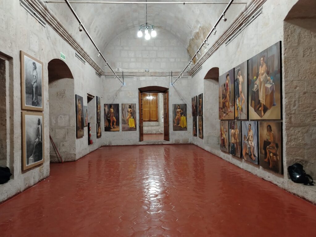 La exhibición nos ofreció  pinturas que muestran el resultado  de una etapa importante del proceso de formación de los artistas profesionales de la Universidad de San Agustín. Se  trata de los cuadros que se pintaron en los talleres de pintura V y VI de la Especialidad de Artes Plásticas de la Escuela Profesional de Artes de la Universidad Nacional de San Agustín.