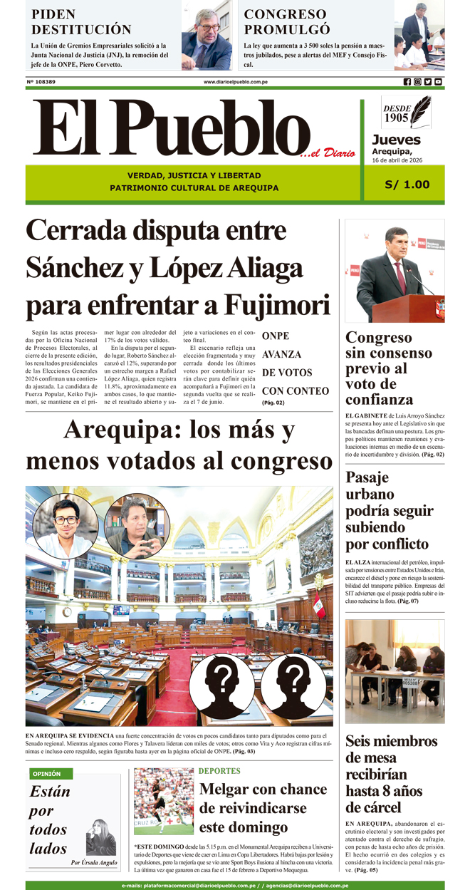 En tanto, en la provincia de Camaná, los distritos de Nicolás de Piérola y Uraca tendrán suspensión del servicio de 07:00 a.m. a 03:00 p.m., alcanzando a sectores como Charahuayo, Sahuani, Las Malvinas, San Martín, Sarcas, Satélite y Torán. Asimismo, en el distrito de Mariano Nicolás Valcárcel, el corte será de 07:30 a.m. a 03:30 p.m., en zonas como Misky II y Secocha.