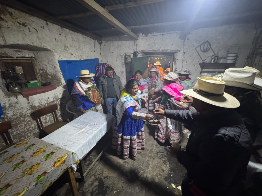Además, destacó que la ceremonia integra elementos de la tradición andina con prácticas religiosas actuales. “Los varones primero ingresan a sahumar la vara y luego entran las mujeres. También se respeta al Divino Niño, es parte de nuestra costumbre”, explicó.