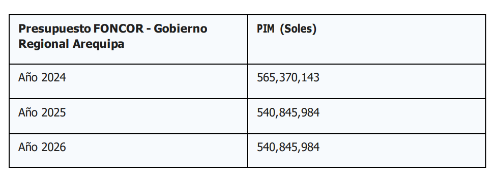 Presupuesto FONCOR – Gobierno Regional Arequipa