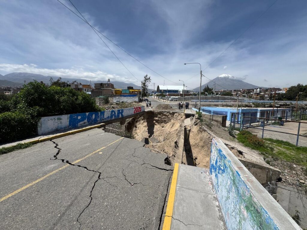 Las intensas lluvias registradas en Arequipa provocaron la caída de un puente en el sector de Casimiro Cuadros, en el distrito de Cayma, y dejaron al borde del colapso otra infraestructura clave que conecta con Cerro Colorado. La emergencia obligó al cierre inmediato del tránsito vehicular y peatonal para evitar accidentes, según informó la Municipalidad Distrital de Cayma.