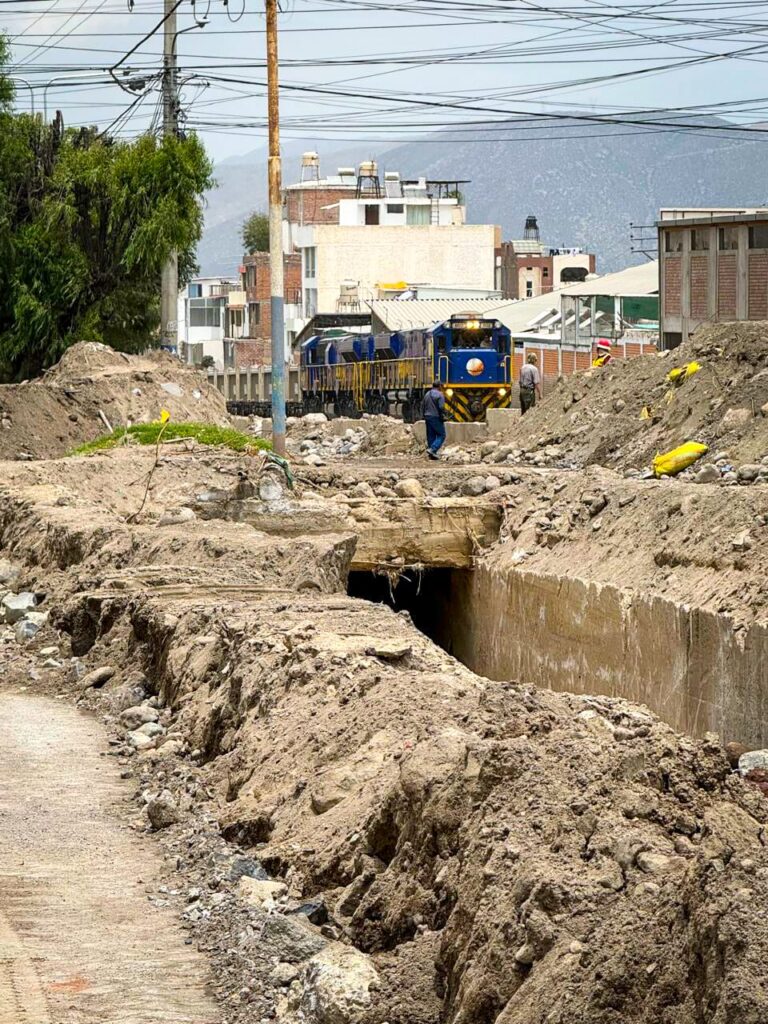La vía férrea en el tramo comprendido entre Flora Tristán, en el Cercado, y el distrito de Sachaca quedó rehabilitada tras los daños ocasionados por el desborde de la torrentera El Chullo, registrado a fines de febrero a causa de las intensas lluvias. La recuperación fue posible gracias al trabajo coordinado entre la Municipalidad Provincial de Arequipa y la empresa privada, lo que permitió restablecer el tránsito ferroviario en este importante tramo afectado por el huaico.
