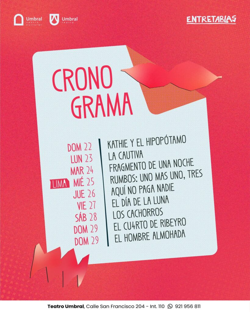 Se desarrollará del 22 al 29 de marzo en el Teatro Umbral, ubicado en Calle San Francisco 204, y reunirá una selección de obras locales que incluyen propuestas de drama, comedia y reflexión, pensadas para distintos públicos. El teatro no solo es un espectáculo, sino también un espacio de formación, expresión y análisis de la realidad.