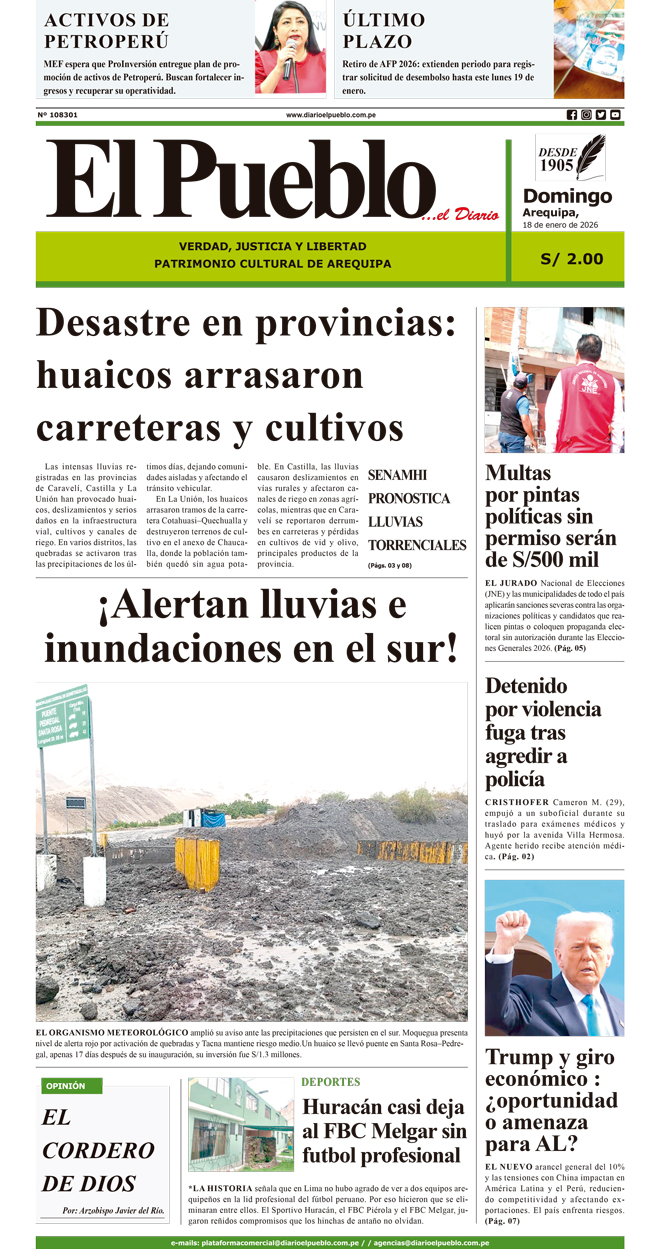 — Redacción Diario El Pueblo — “Arequipa quiere diálogo entre las autoridades que se van