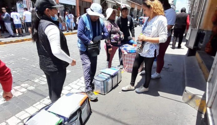 Los vendedores ambulantes aparecen en las calles de Arequipa por turnos, cuando se acaba su tiempo recogen sus cosas se retiran y llegan otros a ocupar el espacio dejado, trayendo consigo una serie de productos.